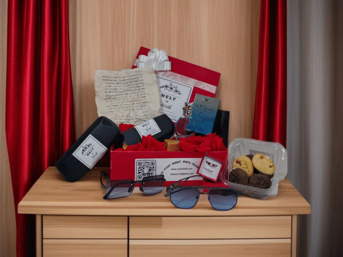 A delightful coupleās gift hamper š featuring stylish accessories š¶ļø, indulgent treats šŖ, and romantic touches šāperfect for celebrating love, anniversaries, or any special moment together.