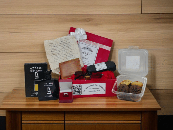 A deluxe gift set for the man of class ā featuring signature fragrance, stylish accessories, SPR homemade cookies, and a romantic touch to make every occasion memorable. āØ